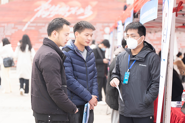 招聘会现场,前来求职的毕业生们手持简历,认真浏览招聘企业信息,寻找自己感兴趣的岗位,积极主动地与企业招聘人员沟通,介绍自己的专业优势和岗位期待。“现场有好几家上市公司,也有很多和我专业相关的岗位”,软件工程专业应届毕业生吴定表示,“我已经收到企业的面试邀请,希望能应聘成功。”