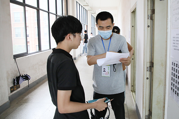 监考人员认真核验考生信息。刘恒 摄