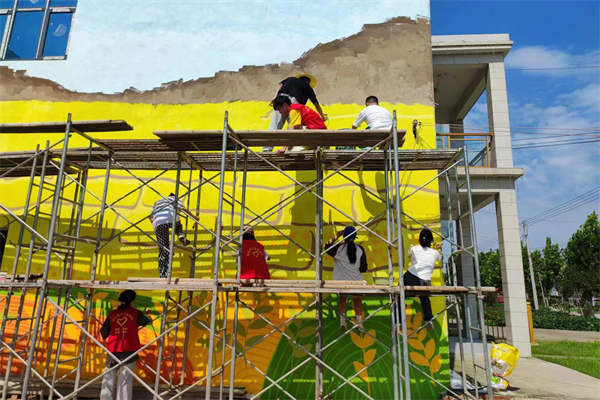 威廉体育2023年暑期社会实践团队走进乡村、社区开展特色墙绘活动。