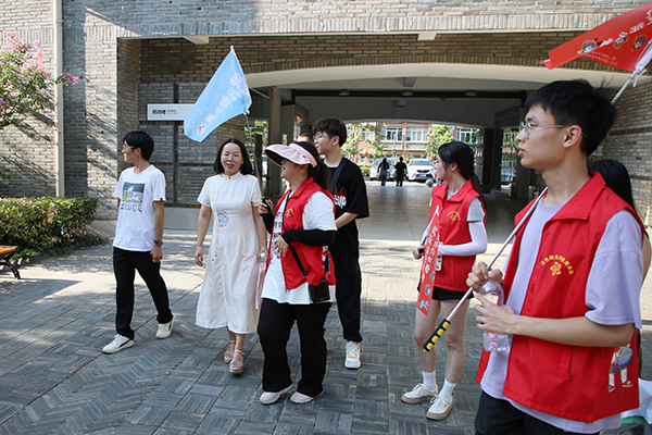 志愿者带领新生和家长游览校园。刘恒 摄
