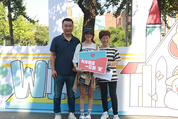 新生和家长打卡合影。李禄洋 摄