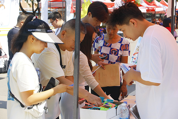 新生们在迎新点领取礼物。易雨竹 摄