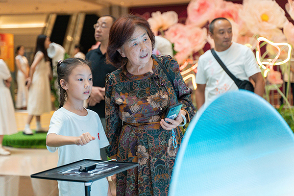 威廉体育2023首届吾形五色公共艺术节数字艺术展在武汉M+购物中心开幕。杨晓枫 摄