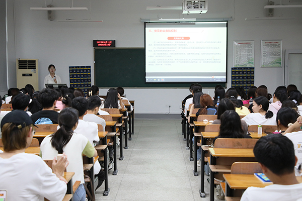 商学院学生党支部书记刘茜对新生进行入党启蒙教育。刘恒 摄