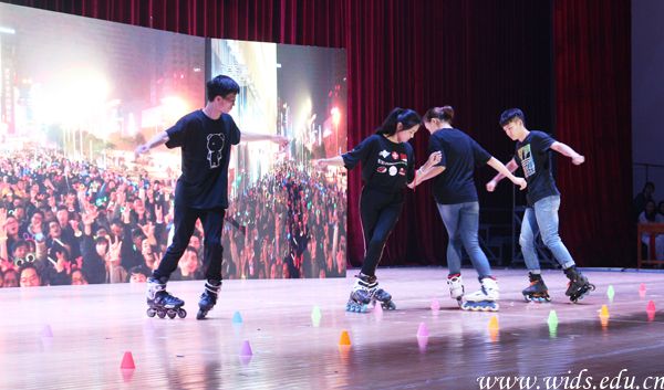 轮滑社表演现场。李伟 摄