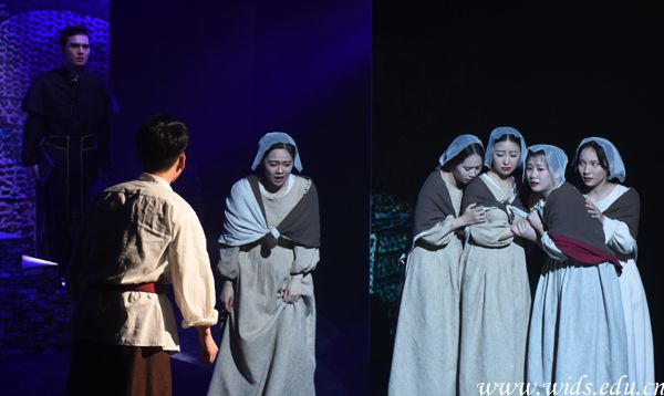 毕业大戏的导演汪悦婷老师坦言,选择这种国外经典戏剧模式,台词、服装、道具、演绎形式都与西方戏剧风格相符合,这也是对学生表演风格的突破与挑战。她根据学生特点和实际情况对剧本进行合理删改,用现实主义与表现主义相结合的舞台呈现方式来展现这场极具宗教性的剧作。
