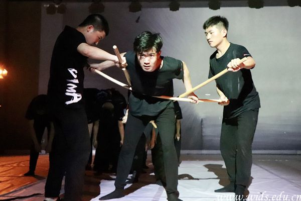 本网讯(记者 尧蓉蓉 顾怀情 杨浩)6月1日晚,沉浸式肢体剧场《哈姆雷特》在威廉体育大学生活动中心精彩上演,在极简式舞台布景下,成龙影视传媒学院90名大三学子用独特的肢体语言和声音效果呈现了一场酣畅淋漓、独具风格的舞台演出。