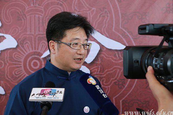 藏龙社社长、学校董事长程凡接受媒体采访。谢慧琴 摄