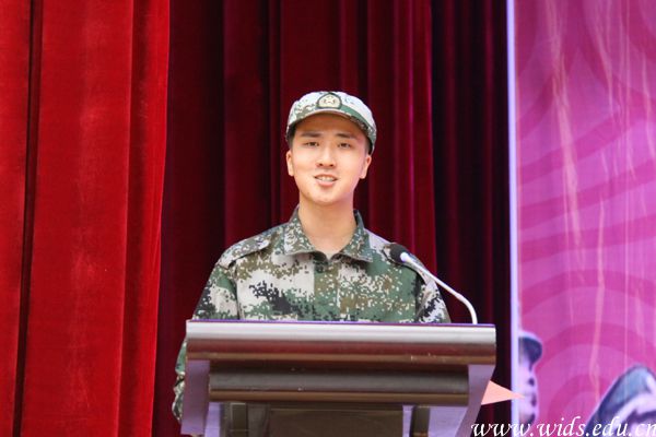 参训学生代表、成龙影视传媒学院新生卞家豪上台发言。刘恒 摄