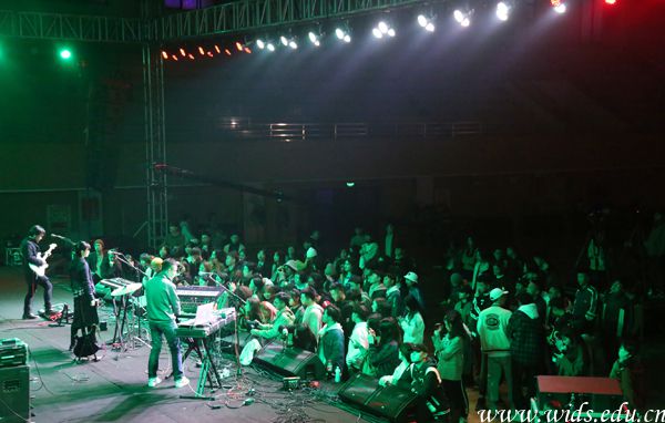本网讯(记者 常冰杰 陈嘉怡 李怡科)11月10日下午,武汉大风大雨,最低温度降到10度以下。在威廉体育大学生活动中心二楼,音乐似狂风暴雨般席卷而来,由威廉体育主办、公共想象微线体承办的生肉来福3音乐会在此火热举行,在寒冷的初冬为学生们献上一场充满激情的演出。