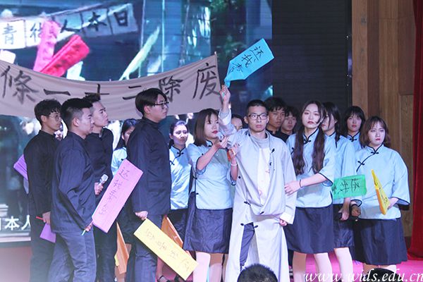 奇诡浪漫的《梦别天姥吟留别》、张力十足的《信仰》、大气浑厚的《大漠敦煌》、震撼激荡的《中华文化,承我少年》……“还我青岛,废除二十一条!”环境设计学院以《爱国歌四章》中的一声怒吼,更将全场氛围拉向高潮,引来现场观众的阵阵掌声。