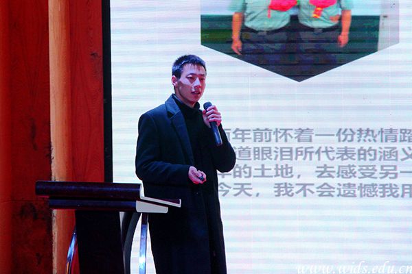 艺术设计学院产品设计1502班程宇亮第一个上台发言。曾有过两年军旅生活的他,用“细节决定习惯,习惯决定性格,性格决定命运”作为自己的开场白。他坦言,艰苦的军旅生活教会了他责任感和感恩心,正是这一段难忘的经历,磨炼了他的意志,促使他在大学生涯中不断努力。