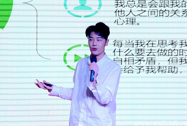 成龙影视传媒学院表演1502班刘浩然的分享主题是“日渐月染”。他认为,在求学之路上,应认真对待每一件事情,让自己每天进步一点点,日积月累下来将会进步一大步。