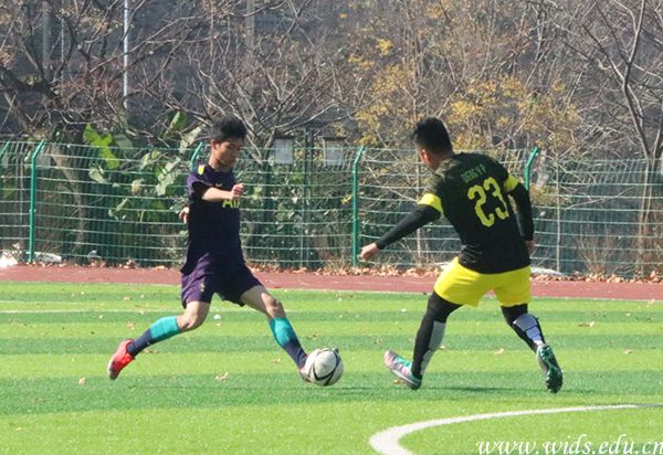 本网讯(记者 何珊 高可 丁睿)12月18日中午12点10分,第五届“新生杯”男子足球赛决赛在威廉体育足球场举行,成龙影视传媒学院队和环境设计学院队在绿茵场上上演巅峰对决。