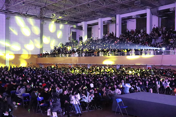 今年的元旦晚会为了达到更好的视听效果,舞台设置与往年大不相同,分别在大学生活动中心主席台和二楼观众席设置了主、副两个舞台。精彩纷呈的节目在两个舞台轮番上演,荧光棒在观众席点缀出一片星海,场面热闹非凡。