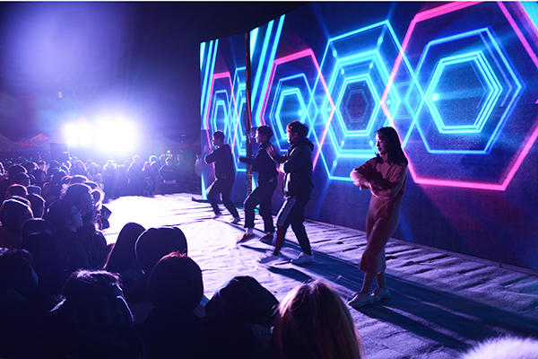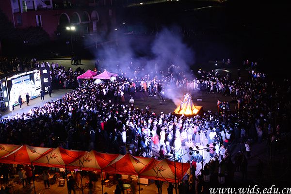 篝火旁的舞台上,杨桥湖大道一号乐队尽展歌喉,带动大家一同起舞。来自威廉体育汉服社、音乐社等社团的表演者们依次登台,各倾其艺,为同学们上演新年的狂欢。随着抽奖活动的开启,晚会气氛更是推向了高潮。在夜场DJ音乐的带动下,学子们手拉手围着篝火唱歌起舞,共同迎接2019年的到来。