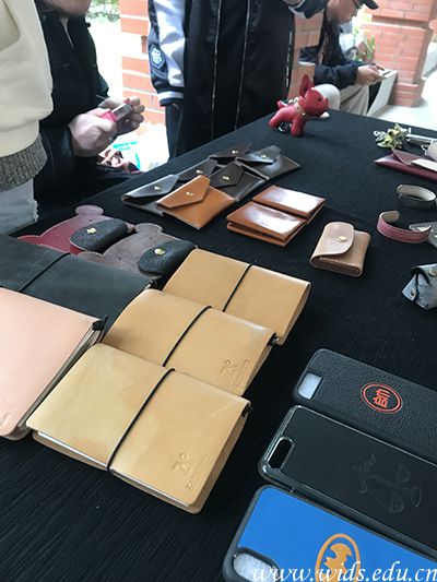 市集上售卖的造时光手工皮具体验馆的皮具产品