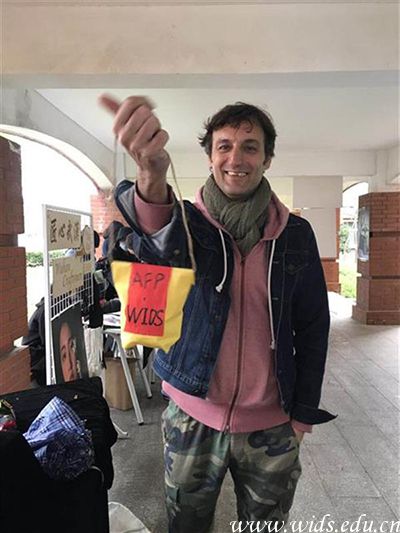 来自比利时的外教Tom买到了心仪的商品,脸上洋溢着开心的笑容