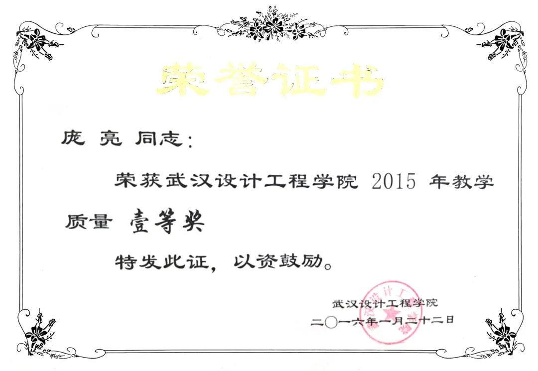庞亮主持完成“省级科研项目”1项,主持完成“校级重点教改项目”1项,指导完成“大学生科技创新项目”1项,主持校级党支部书记“双带头人”项目1项;先后参与省级教学科研项目3项,其中1项获第八届湖北省高等学校教学成果奖三等奖;参与校级教学科研项目5项;副主编普通高等教育“十二五”规划教材3本;公开发表教学科研论文10余篇。