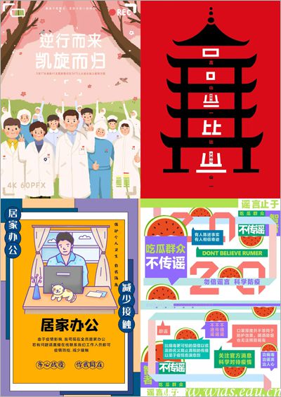 海报设计类作品展,则主要从描绘宅家日常,致敬白衣天使、宣传不信谣不传谣等角度进行防疫宣传,讴歌战“疫”精神,鼓舞抗“疫”斗志,展示了当代青年的使命与担当。