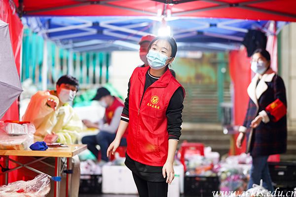“平时在学校我就经常参加志愿活动。这次疫情发展的比较严重,作为一名大学生,应该展现出当代青年应有的积极向上的精神。”环境设计学院青年志愿者工作部副部长吴张红所在社区约有3300户居民,报名成为社区防疫志愿者后,每日的工作量都是巨大的,他们要向居民发放免费蔬菜,参与地毯式排查工作,苦口婆心劝诫居民戴口罩、做好个人防护等等。这些工作虽然听起简单,但是巨大的工作量让他每天回到家都感到筋疲力竭。“很多朋友、同学都好奇的问我微信步数咋那么多。我跟他们说我在街道巡逻,他们刚开始都特别惊讶,说疫情这么严重你还出去!不怕感染吗?怕啊,我也怕,但正是疫情这么严重,才需要勇敢的逆行者。”