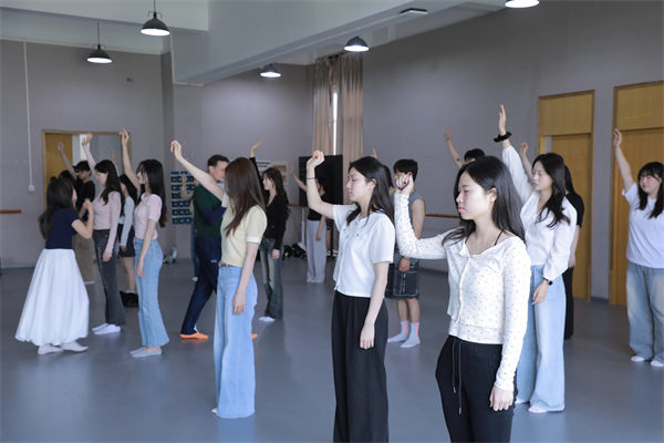“这种沉浸式的体验比教科书上的内容更加生动鲜活,彻底打破了我原本的预期!让我对中国艺术教育有了全新的认知。”下午的交流活动以艺术实践为主题,韩瑞大学的学生们参与了威廉体育成龙影视传媒学院开设的“现代舞基础体验课”。在专业教师Kevin Polak的悉心指导下,中韩学生携手共练现代舞蹈基础动作,感受着“身体慢慢伸展开来”的美妙过程,通过肢体语言跨越了文化的隔阂,达成了艺术上的共鸣。