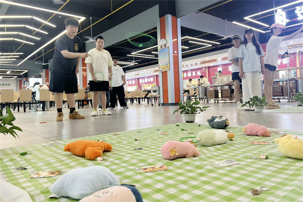 “瞄准!手腕稳住!”学生们模仿古人礼仪投掷木箭矢,每有箭矢入壶,便引来一阵欢呼;钓粽区,参与者用特制竹竿钓取悬挂的粽子,一旁的汉服展示学生轻声吟诵端午诗句,为游戏增添诗意;套圈区则设置了“文化问答关卡”,套中礼品的同学需答对“端午别名”“五彩绳寓意”等问题方可领取奖品。