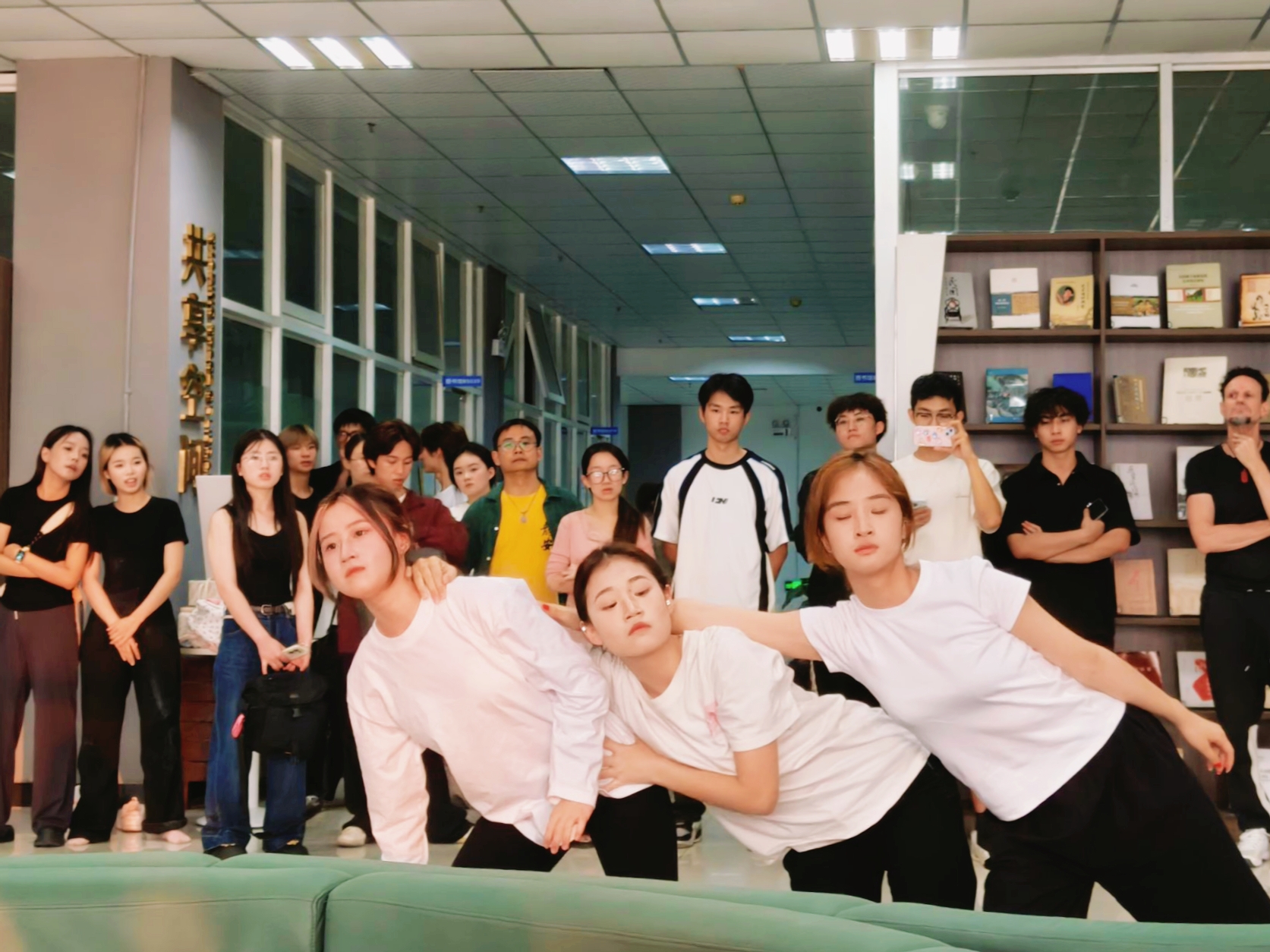 4月23日至5月19日,成龙影视传媒学院美育教研室田筱源团队、李锦涛老师、特聘专家教授Kevin Polak分别在三场专场活动中,带领读者体验阅读与美育的实践表达。在阅读与绘画创意的精妙结合中,田筱源团队以“我印象中的武设书馆”为创作主题,巧妙融入导师讲书环节,引导同学们将建筑美学与文学想象完美融合,绘制出一幅幅精美的书签作品。在阅读与舞蹈的创新融合中,李锦涛老师以“书页间的舞步”为主题,带领学生们沉浸式演绎村上春树短篇小说集《夜半蜘蛛猴》选篇,让师生在文字韵律与艺术张力的交织碰撞中,深刻感受阅读的独特魅力。Kevin Polak教授则以“阅动的莎士比亚”为主题,通过肢体剧场舞蹈的形式解读莎士比亚作品《驯悍记》,突破空间限制,设计开放式互动剧情,成功打破阅读与表演的界限。活动场场爆满,取得良好效果。