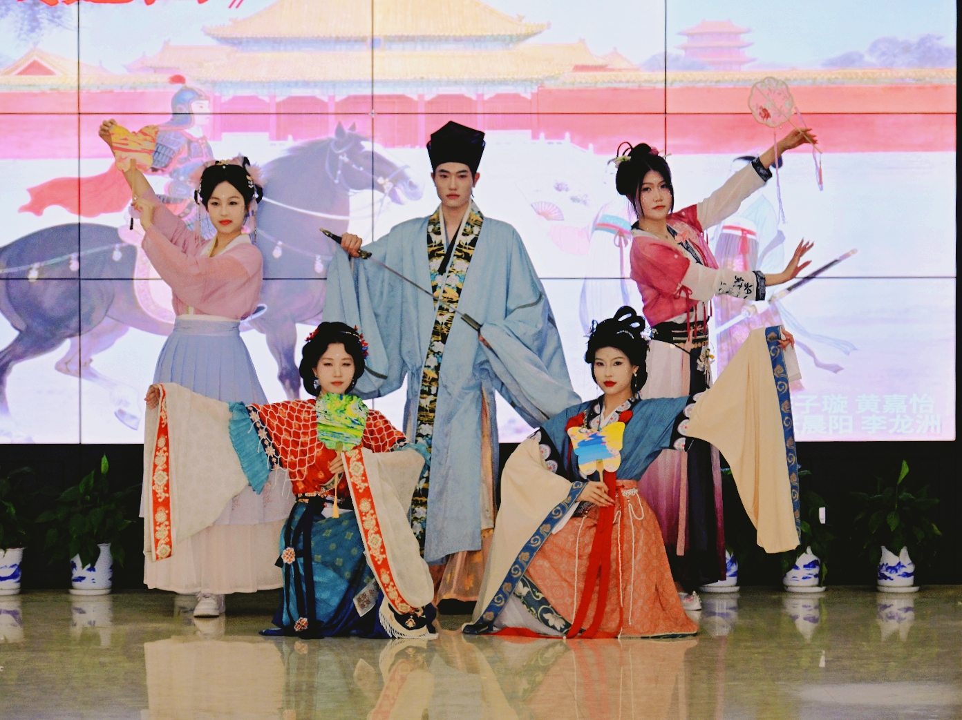 5月30日,由图书馆联合时尚设计学院精心策划,并在该院指导老师李倩文、孙如意的充分筹备下,“藏龙智库·文化大讲堂”美育专场活动诚邀师生共赴一场跨越千年的文化盛宴。时值端午佳节临近,活动以“华服流转承端午,典籍纵横话古今”为主题,时尚设计学院表演专业学生纷纷化身“文化推荐官”,通过“汉服演绎+典籍推荐”的模式,让典籍焕发新生,是传统文化之美与现代艺术演绎的又一次深度融合。