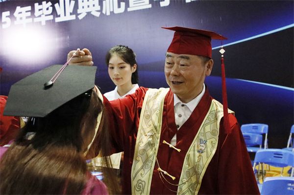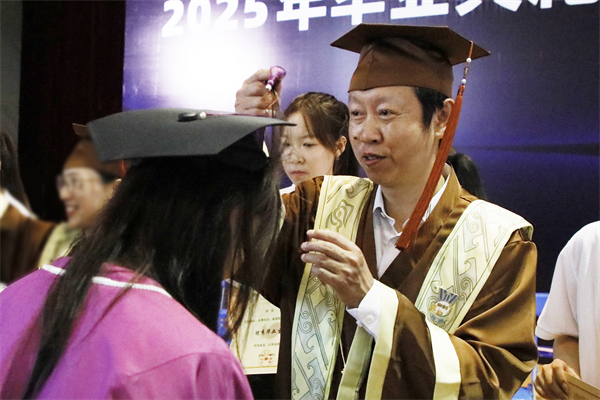 校领导、学位评定委员会委员为2025届毕业生拨穗、颁发证书并合影。刘恒 覃俊杰 于一宁 贾亦萱 摄