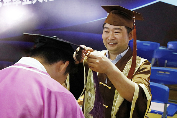 在热烈的掌声中,学校领导、学位评定委员会委员为“优秀毕业生”拨穗、颁发证书并合影,以表示肯定与鼓励。与此同时,各学院导师代表在学院分会场为学士学位获得者授予学位,合影留念。