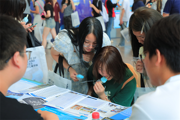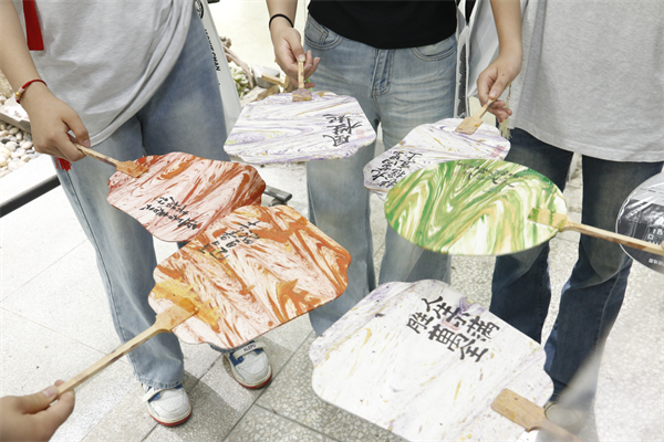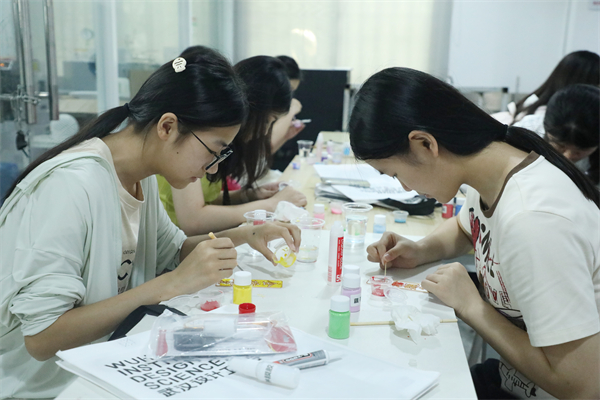 考生们在公共艺术学院体验“3D打印+掐丝珐琅”、漆扇及扎染工艺制作。程金玲 周佩 摄