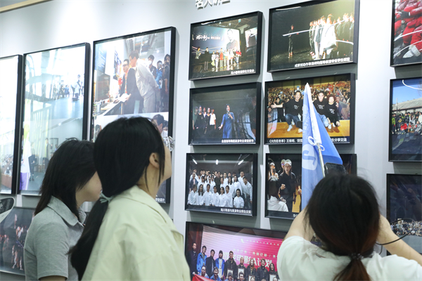 考生们参观打卡成龙影视传媒学院。程金玲 摄