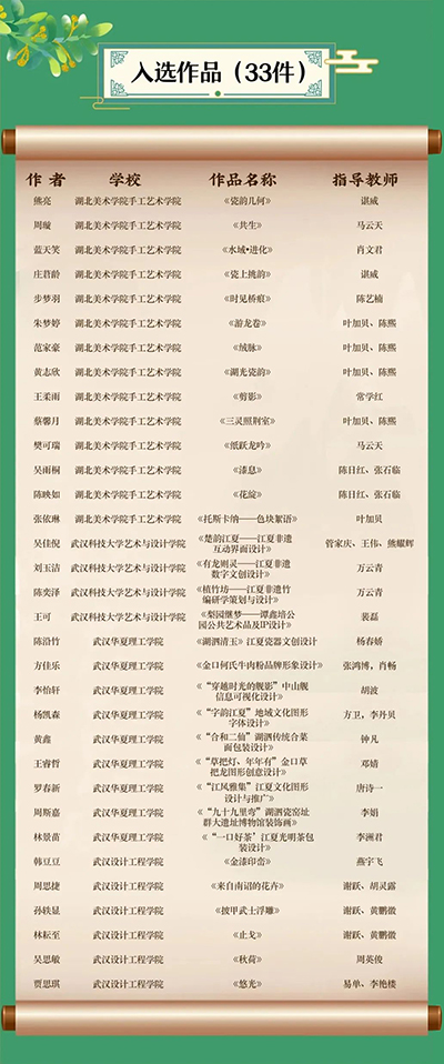 “非遗正青春——毕业设计话江夏”活动入选作品名单。