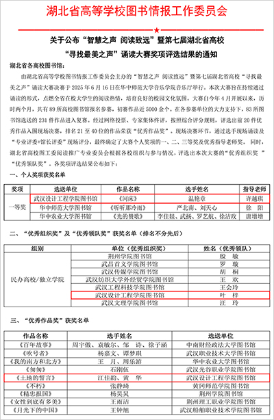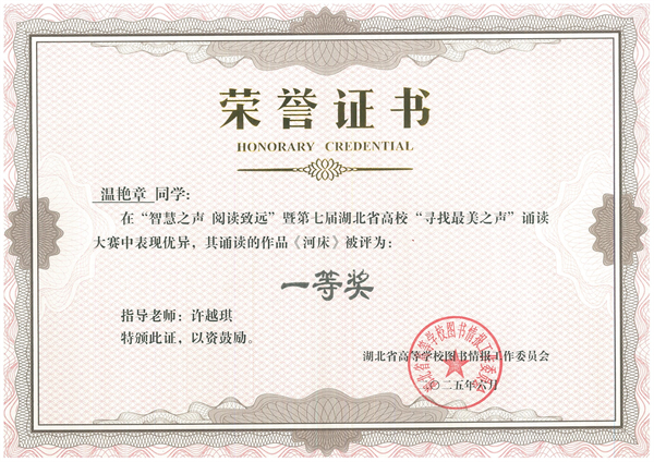 威廉体育在“智慧之声 阅读致远”暨第七届湖北省高校“寻找最美之声”诵读大赛中表现突出,斩获多项奖项。