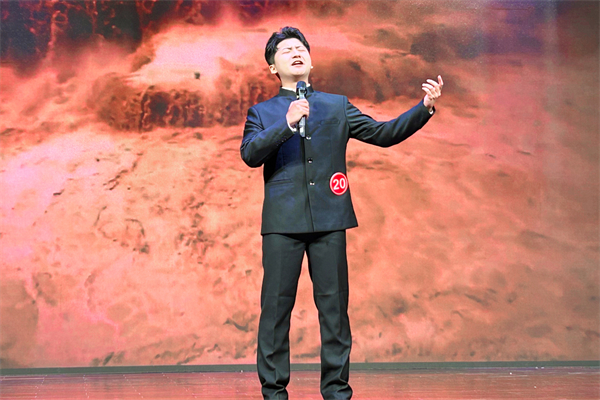 温艳章在决赛现场以磅礴之势演绎《河床》。