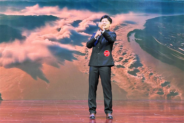 总决赛现场,各高校参赛选手皆展现出超凡实力,参赛作品中不乏令人心潮澎湃的红色经典之作,亦不缺少充满诗情画意的名篇佳作。“压轴登场的温艳章,以磅礴之势演绎《河床》,其罕有的华丽音色与卓然的舞台掌控力,将作品的恢宏气象与深邃意蕴诠释得入木三分。”叶梓介绍,温艳章充满力量与感染力的诵读,令每一个音符都宛若奔涌的激流,在听众心间产生强烈共鸣。他朗诵完毕,现场爆发出经久不息的掌声,现场评委更是给出了97.73分的全场最高分。