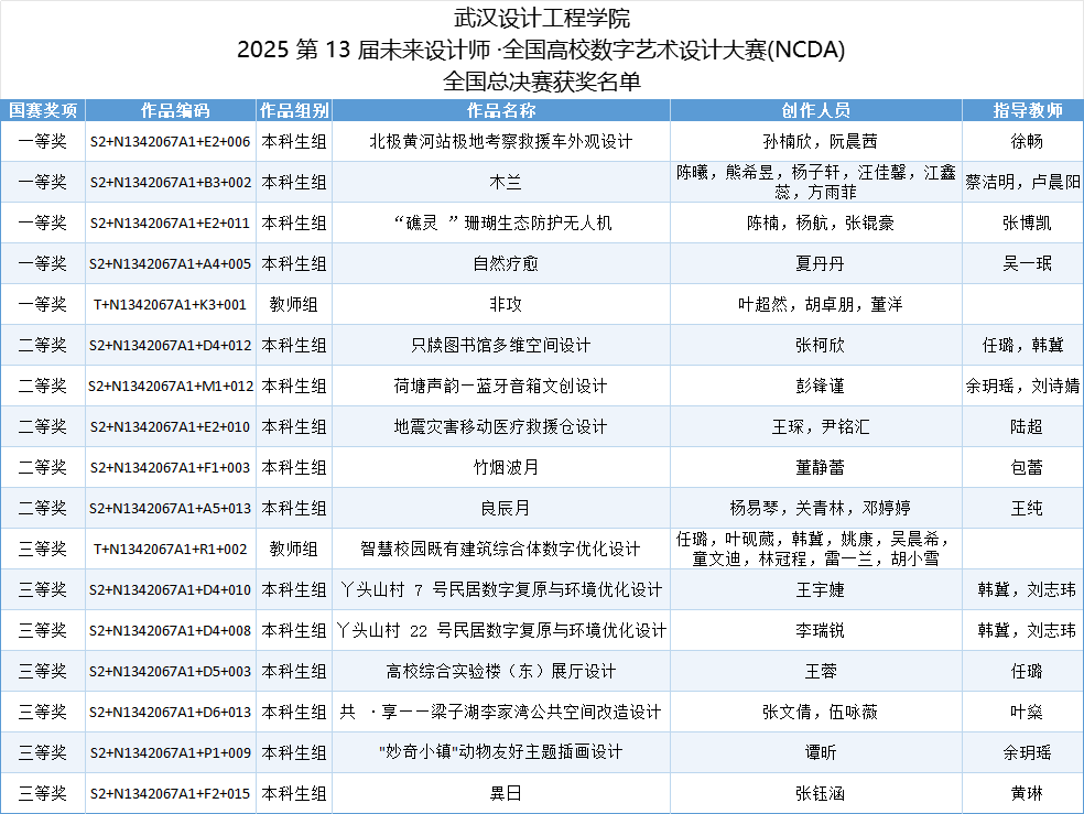 威廉体育师生在第十三届未来设计师·全国高校数字艺术设计大赛总决赛获奖名单。