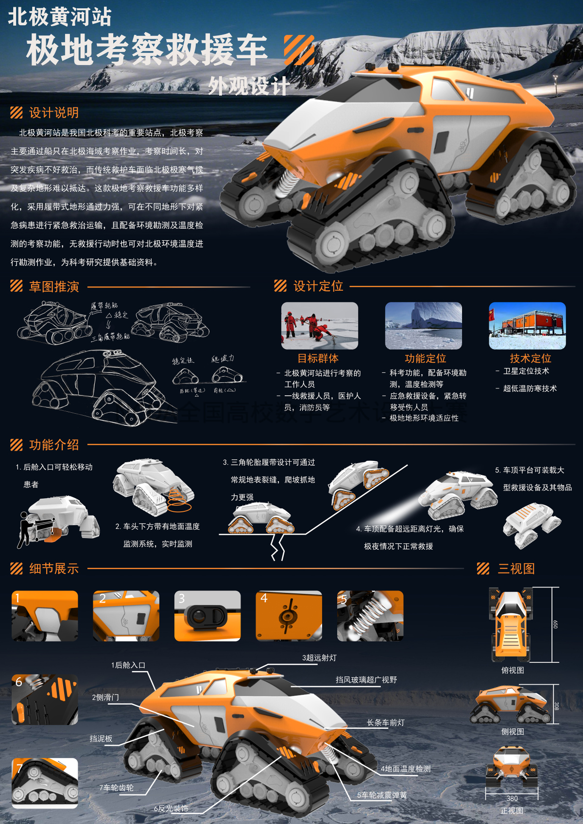 国家级一等奖作品:《霓北极黄河站极地考察救援车外观设计》