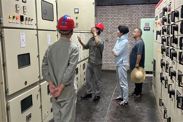 王明明(右二)组织专业人员检修学校配电房。