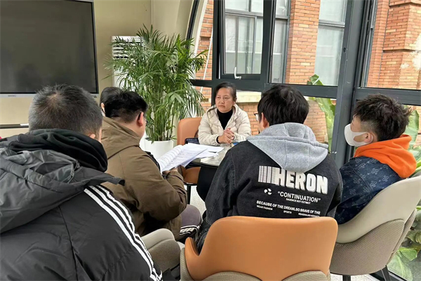 范露与所带班级班委讨论筹备班级活动。