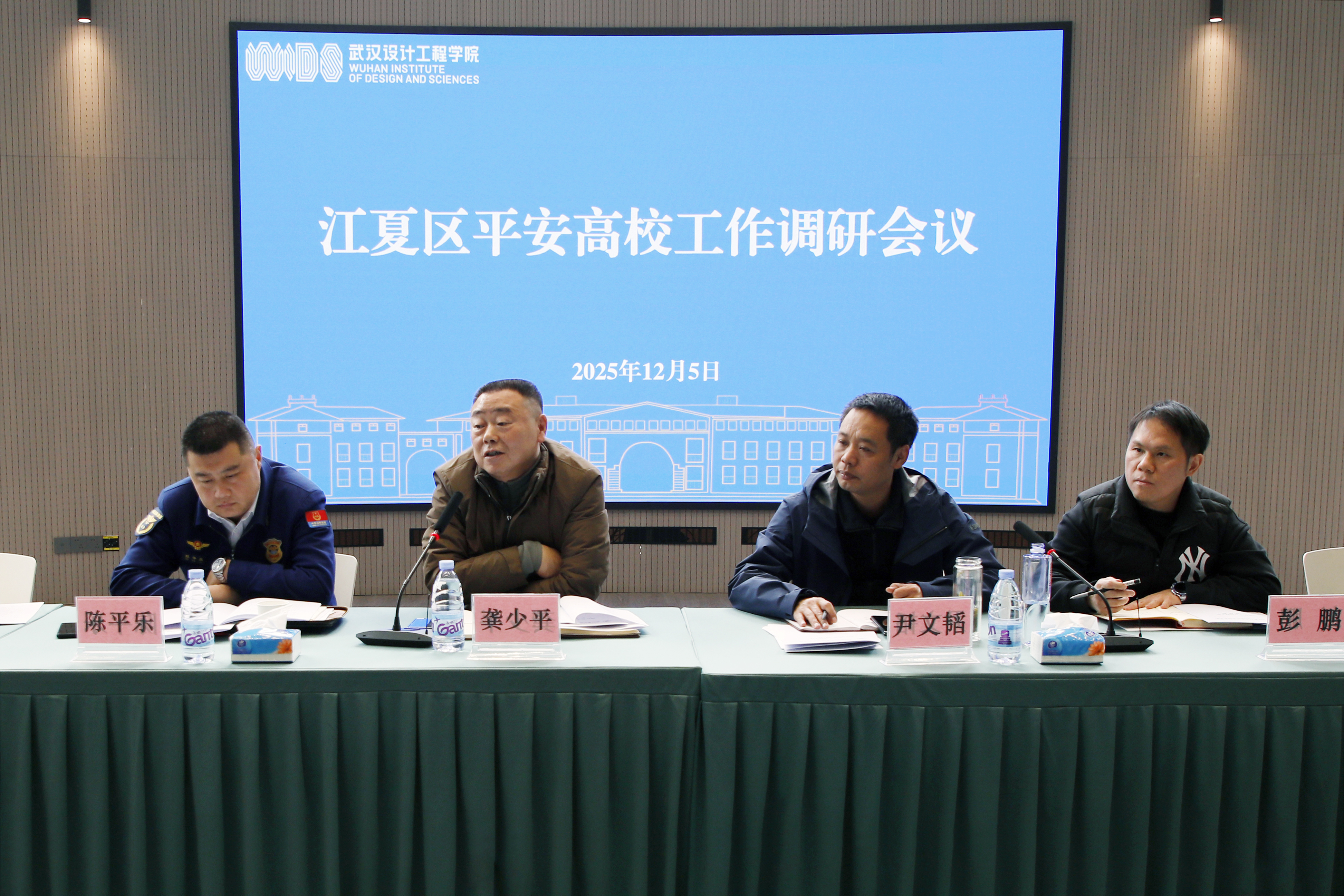 龚少平代表学校对江夏区委政法委及区各职能部门领导、兄弟院校同仁的到来表示热烈欢迎,对上级部门长期以来的指导与支持表示衷心感谢。他表示,学校在维护校园政治安全、治安防控、消防安全、实验室安全、食品安全及学生心理健康教育等方面已取得阶段性成效。学校将持续提升校园安全治理效能,全力建设更高水平的平安校园,为师生营造安全稳定的育人环境,为区域发展贡献力量。
