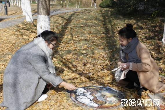 这副图的涂鸦工作,则由环境设计学院大三学生吕子琎主导完成。龙冰冰和吕子琎都是摄影爱好者,二人相识于学校大学生通讯社摄影部,相同的兴趣,让她们成为无话不谈的好朋友。得知此次比赛后,龙冰冰第一时间报名,“我设计图案后,马上交给吕子琎,她也喜欢这幅作品,熬通宵画出初稿。”龙冰冰说,将作品涂在井盖上并非易事,凹凸不平的花纹,会对原画线条造成影响,两人蹲在地上画了近4个小时才完成,“明年我们就毕业了,希望学弟学妹们也能看到我们的作品。”