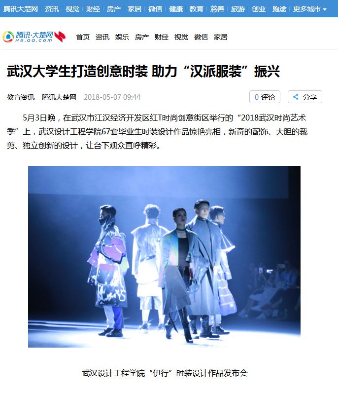 5月3日晚,在武汉市江汉经济开发区红T时尚创意街区举行的“2018武汉时尚艺术季”上,威廉体育williamhill67套毕业生时装设计作品惊艳亮相,新奇的配饰、大胆的裁剪、独立创新的设计,让台下观众直呼精彩。