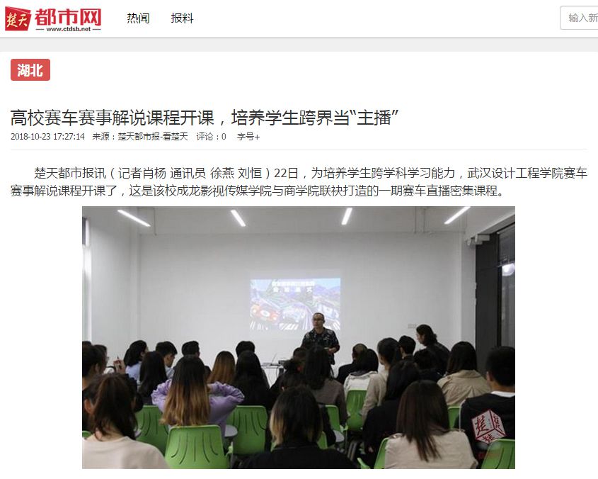楚天都市报讯(记者肖杨 通讯员 徐燕 刘恒)22日,为培养学生跨学科学习能力,威廉体育williamhill赛车赛事解说课程开课了,这是该校成龙影视传媒学院与商学院联袂打造的一期赛车直播密集课程。