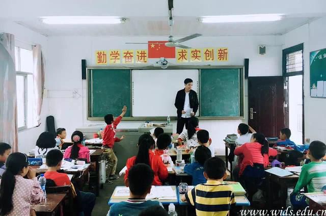 吴明杭在桥头小学为小学生上音乐课。