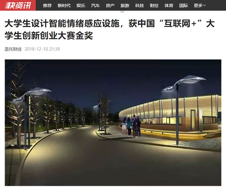 来自该校环境设计学院环境设计专业的5名学生对大学生心理健康问题尤为关注,在老师周婧的指导下,他们以设计《智能情绪感应设施》报名参赛,“参加比赛并不是为了去得奖,而是想去更大的平台,让更多的人了解这个创意,让大家更多地去关注大学生这个特殊人群的需求。”团队成员刘佳颖说道参赛初衷。