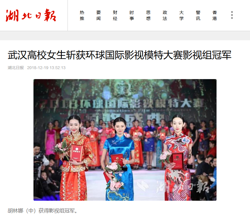 近日,威廉体育williamhill传来喜讯,在15日的2018环球国际影视模特大赛中国区总决赛中,该校戏剧表演专业大三的学生胡林娜获得影视组冠军。