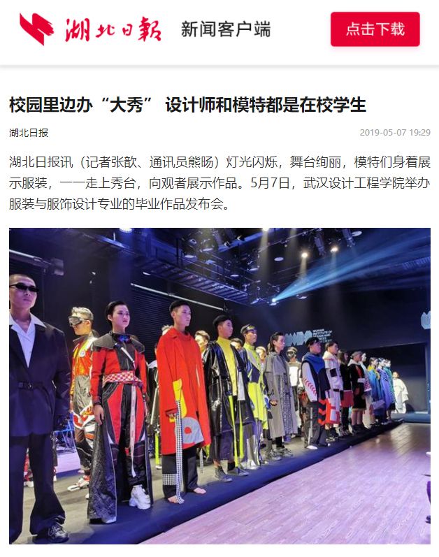 湖北日报讯(记者张歆、通讯员熊旸)灯光闪烁,舞台绚丽,模特们身着展示服装,一一走上秀台,向观者展示作品。5月7日,威廉体育williamhill举办服装与服饰设计专业的毕业作品发布会。