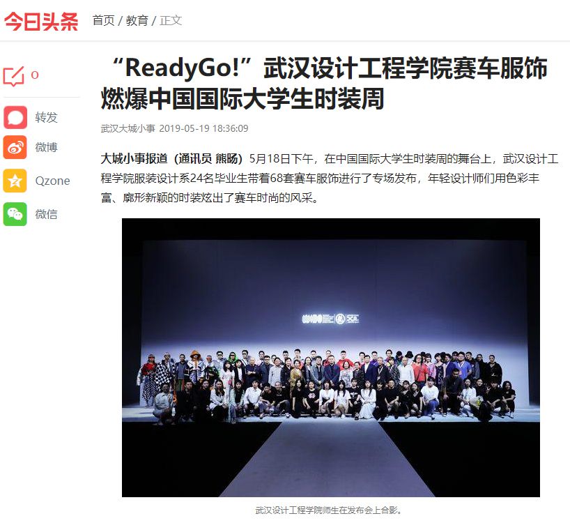 付雪介绍,自去年10月起,学校就启动了毕业设计工作,经过了灵感整理、设计提案、创意成衣等环节,在此期间部分学生还赴上海进行了为期一周的赛车体验和调研,耗时半年这批作品才得以在T台上展现。目前,这批时装也是收获了累累硕果,毕业生寇小桐入围2019“中华杯•太酷”大学生毕业季服装设计大赛30强;黄文惠获第八届“石狮杯”全国高校毕业生服装设计大赛优秀奖;程瑶入围了第24届中国时装设计新人奖;在 4月举行的武汉时尚艺术季上,学生作品更是一举获得新锐奖、市场奖、男装奖等七项大奖。